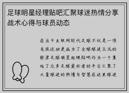 在足球这项广受欢迎的运动中,明星球员们的激烈对抗时常成为比赛的重要看点。从华丽的进攻动作到紧张刺激的防守瞬间,这些都是足球比赛中不可或缺的元素。然而,不仅在场上的对抗,赛场外的一些冲突同样引发了热议与争议。本文将从四个方面进行详细阐述:首先,我们将回顾一些经典的激烈对抗瞬间;其次,分析这些冲突背后的心理因素;接着,探讨媒体如何渲染和解读这些事件;最后,总结这些冲突对于球员与球队形象的影响。通过全面...